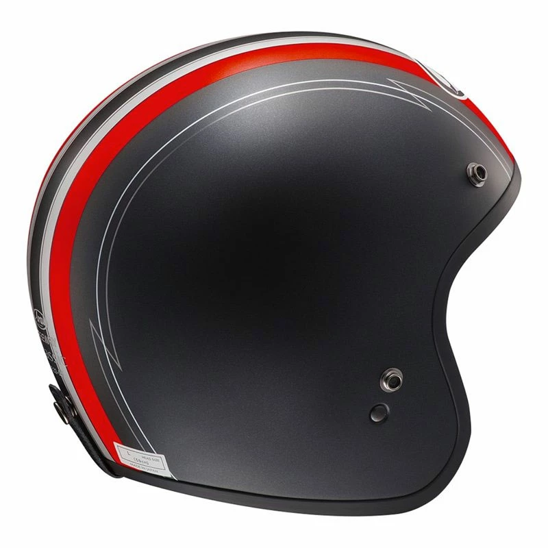 Casco Jet in FIBRE GLASS La calotta esterna in Arai Fiber Glass è resistente, leggera e fornisce maggiore comfort rispetto ai tradizionali caschi di questo tipo. TEST DI PENETRAZIONE SUPERATO Anche se non richiesto dalla vigente normativa europea, Arai mette alla prova i propri caschi con un’ulteriore verifica di sicurezza: il test di penetrazione sottopone il casco all’impatto di un cono metallico di 3kg, da un’altezza di 3 metri. POLISTIROLO IN UN’UNICA CALOTTA A DENSITA’ DIFFERENZIATA L’esclusiva tecnologia Arai permette di realizzare una calotta interna assorbi-urto con più densità differenti in un unico elemento, anziché assemblare elementi di densità diverse per ottenere la calotta interna finale. FRONTINO SUNVISOR® Frontino Sunvisor® fornito di serie. GUANCIALI REMOVIBILI I guanciali in tessuto antisudore ipoallergico, sono removibili e lavabili. CINTURINO IMBOTTITO L’imbottitura del cinturino, removibile e lavabile, migliora ulteriormente il comfort e la calzata. NERVATURE DI RINFORZO Per aumentare ulteriormente la rigidità della calotta, il casco è dotato di nervature di irrigidimento alla base, per garantire massima sicurezza anche nella zona degli sfoghi d’aria laterali. VERNICE Vernice opaca speciale anti-ditate.