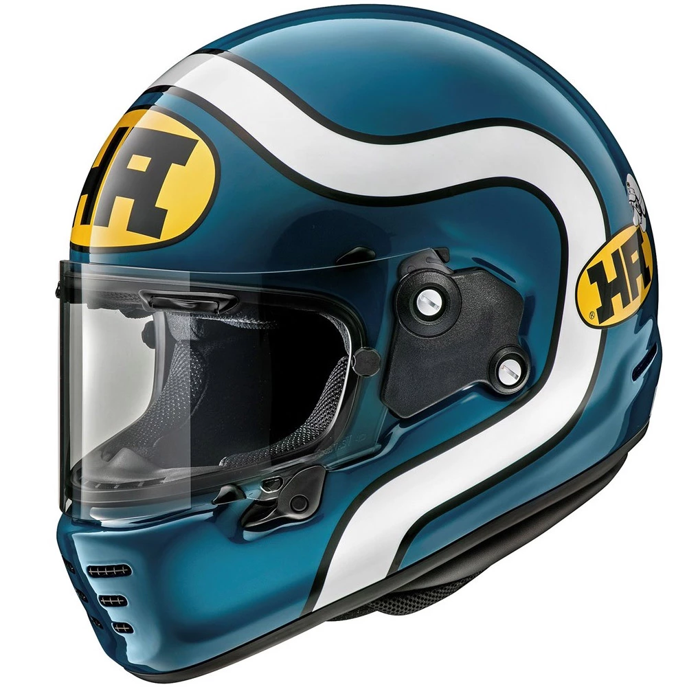 Gli anni, del resto, in cui è nata la leggenda di Arai, con piloti come Wes Cooley e Freddie Spencer. Non sono grafiche replica quelle che impreziosiscono il nuovo Arai Concept-X, ma è inevitabile riconoscere nei motivi sul nuovo casco della Casa di Ohmiya quelli che piloti e appassionati di quegli anni sfoggiavano in quel periodo se non siete proprio di primo pelo, quei motivi gialli, rossi e verdi evocheranno immediatamente l’immagine di qualche moto, probabilmente giapponese, dalla vostra memoria. Bisogna invece essere dei profondi conoscitori della storia Arai per capire il significato del logo “HA” che campeggia sul frontale.