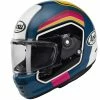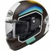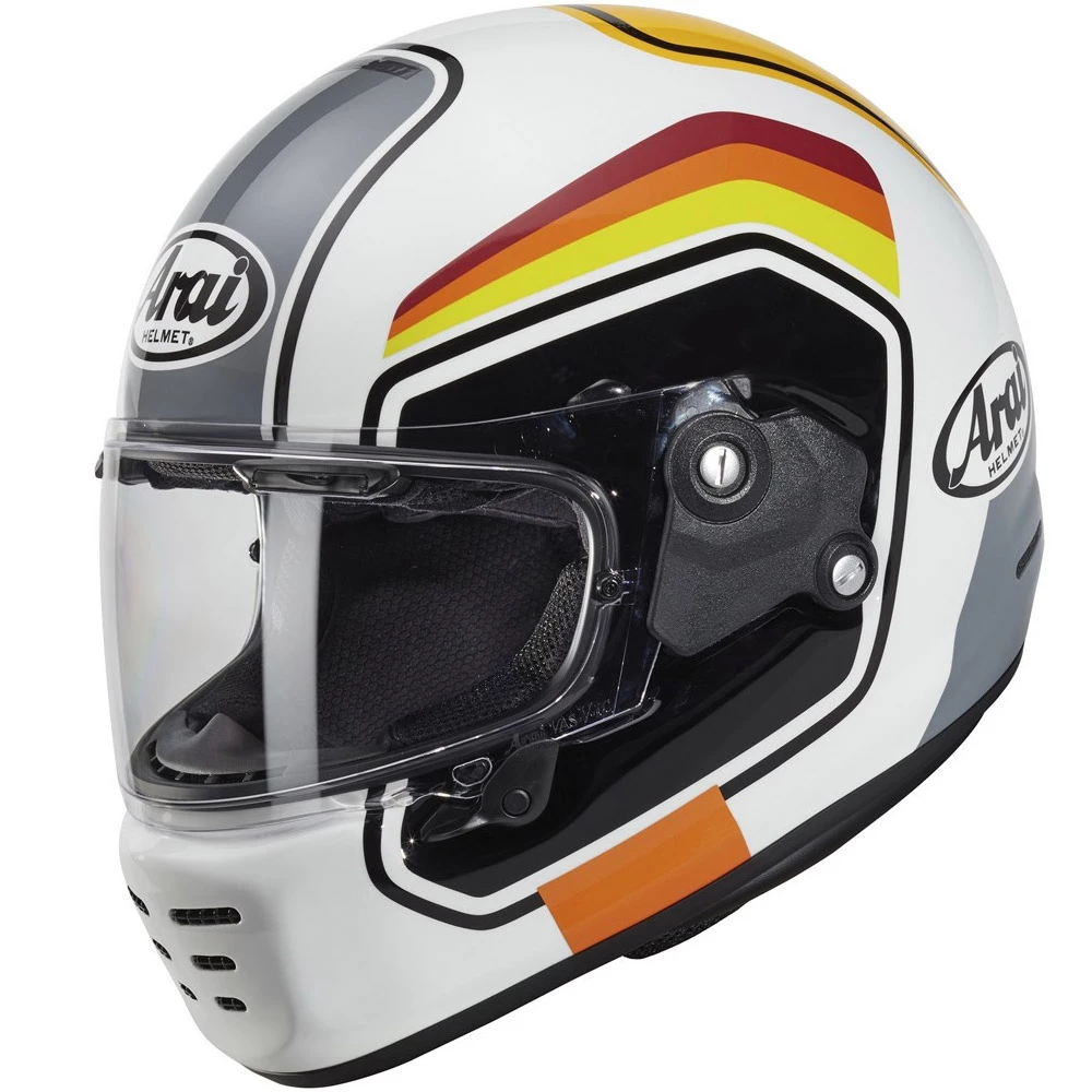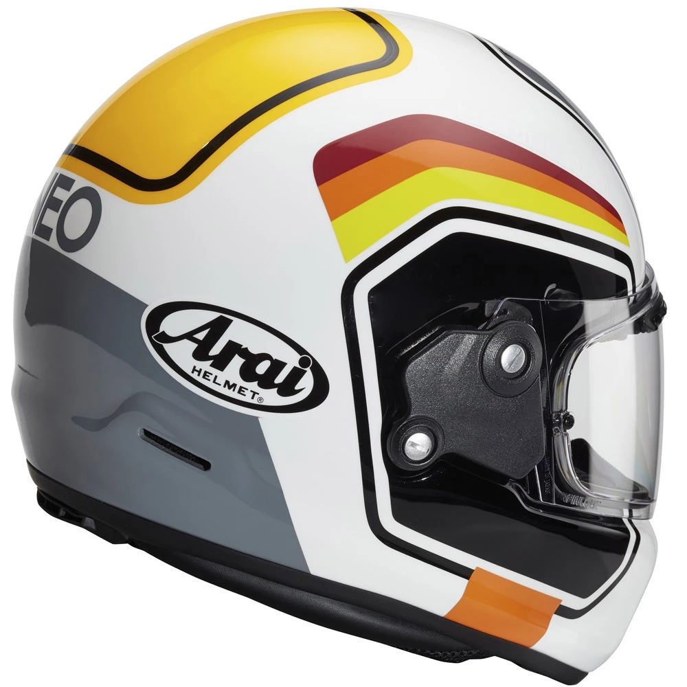Gli anni, del resto, in cui è nata la leggenda di Arai, con piloti come Wes Cooley e Freddie Spencer. Non sono grafiche replica quelle che impreziosiscono il nuovo Arai Concept-X, ma è inevitabile riconoscere nei motivi sul nuovo casco della Casa di Ohmiya quelli che piloti e appassionati di quegli anni sfoggiavano in quel periodo se non siete proprio di primo pelo, quei motivi gialli, rossi e verdi evocheranno immediatamente l’immagine di qualche moto, probabilmente giapponese, dalla vostra memoria. Bisogna invece essere dei profondi conoscitori della storia Arai per capire il significato del logo “HA” che campeggia sul frontale.