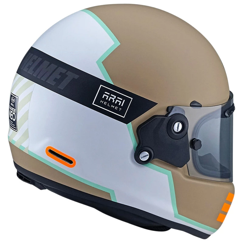 Gli anni, del resto, in cui è nata la leggenda di Arai, con piloti come Wes Cooley e Freddie Spencer. Non sono grafiche replica quelle che impreziosiscono il nuovo Arai Concept-X, ma è inevitabile riconoscere nei motivi sul nuovo casco della Casa di Ohmiya quelli che piloti e appassionati di quegli anni sfoggiavano in quel periodo se non siete proprio di primo pelo, quei motivi gialli, rossi e verdi evocheranno immediatamente l’immagine di qualche moto, probabilmente giapponese, dalla vostra memoria. Bisogna invece essere dei profondi conoscitori della storia Arai per capire il significato del logo “HA” che campeggia sul frontale.